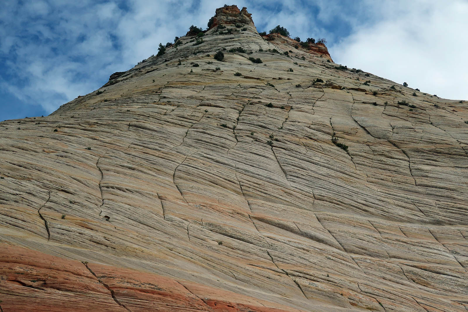 ザイオン国立公園はユタ州に位置し、南はスプリングデール、東はマウント・カーメル・ジャンクションに接しており、面積は593平方kmである。この公園は特徴は、長さ24km、深さ0800mのザイオン渓谷で、ノース・フォーク・ヴァージン川によって赤いナバホ・サンドストーン(砂岩)が侵食されたものである。浸食された岩の芸術とも呼ばれる。ザイオンとコロブ渓谷地域には、中生代の1億5000万年間の堆積を示す9つの地層が含まれる。その地域は、当時、暖かく浅い海、小川、池、湖、広大な砂漠、岸に近い乾燥した環境に覆われていたが、コロラド高原を生み出した隆起により1300万年前から3000mに持ち上げられた。 |
