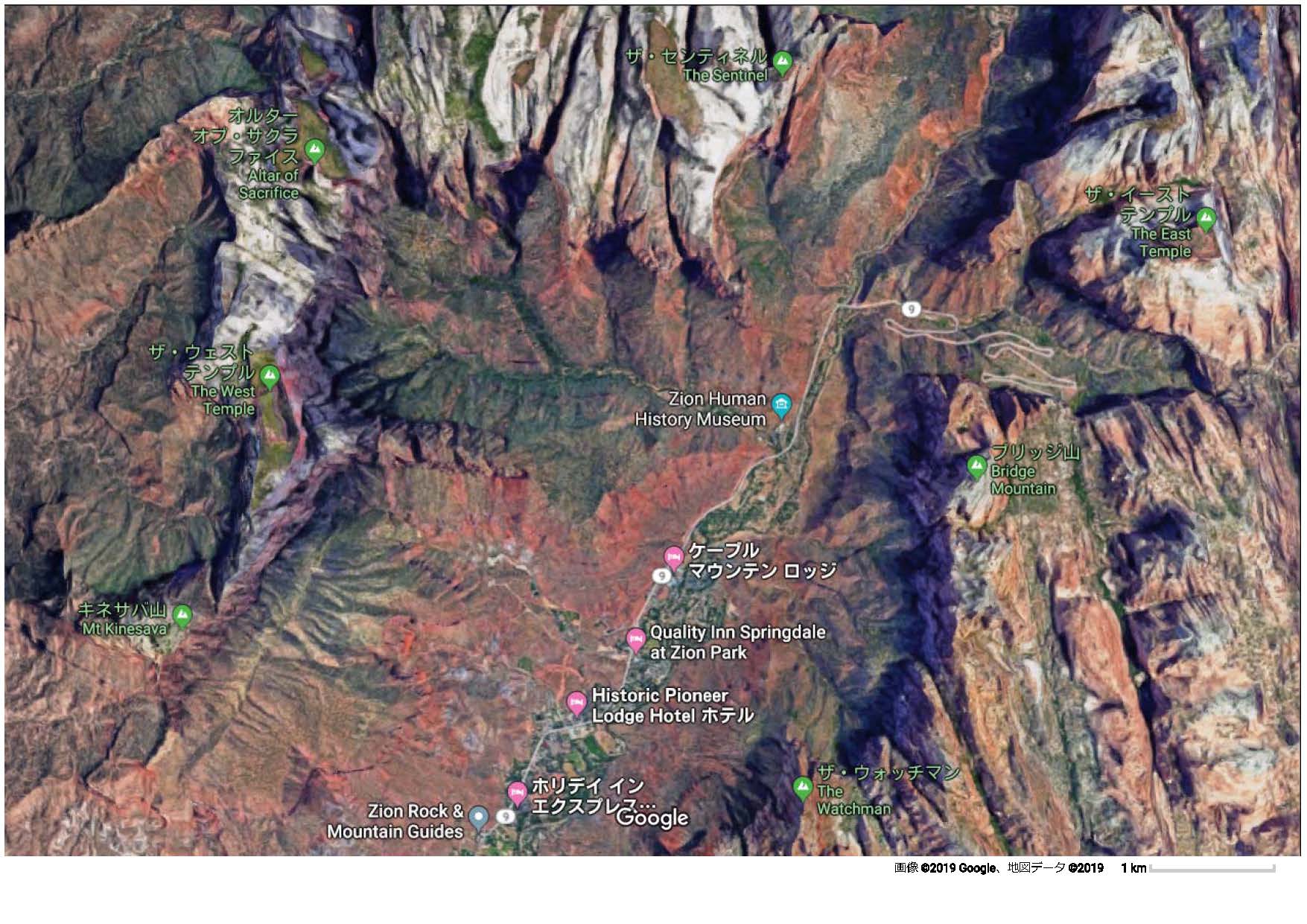ザイオン国立公園 中心部地図