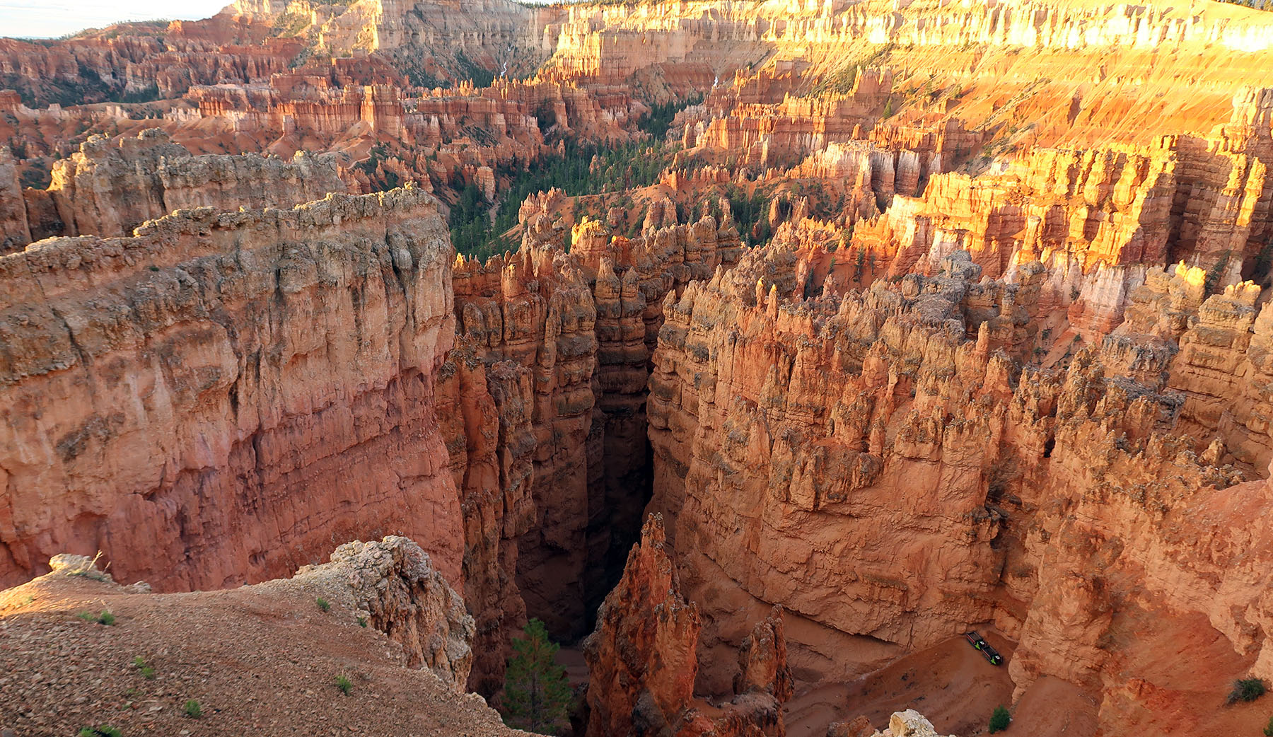 日の出前にブライス・キャニオン国立公園で日の出などを観光、昼食後、デスバレーに移動して宿泊 |