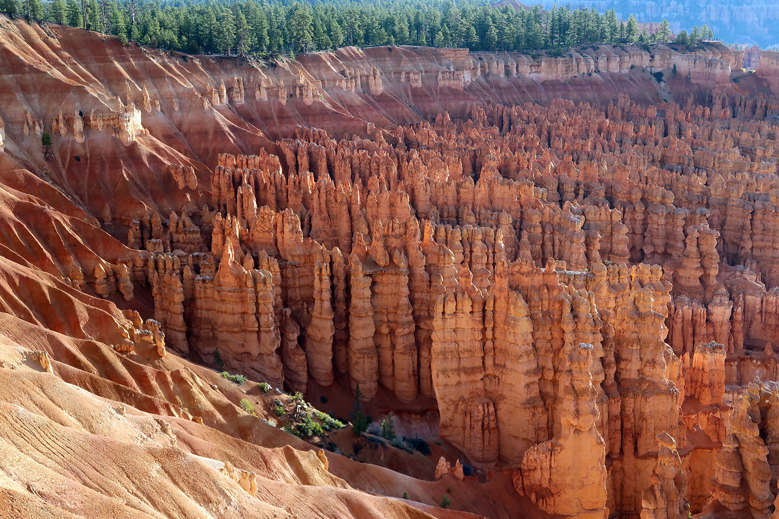 ブライス・キャニオン国立公園(Bryce Canyon National Park)は、米国ユタ州南西部に位置する国立公園である。ブライス・キャニオンは名とは異なり、実は峡谷というより、むしろ高原の東側沿いの侵食によってできた、「土柱」と呼ばれる独特の地質構造を有する巨大な自然の円形劇場(アンフィテアトルム)である。土柱は、風、水、氷による川床と湖床の堆積岩の侵食により形成されたものである。赤、橙、白の岩の色が、公園を訪れる人々に見事な風景を見せてくれる。