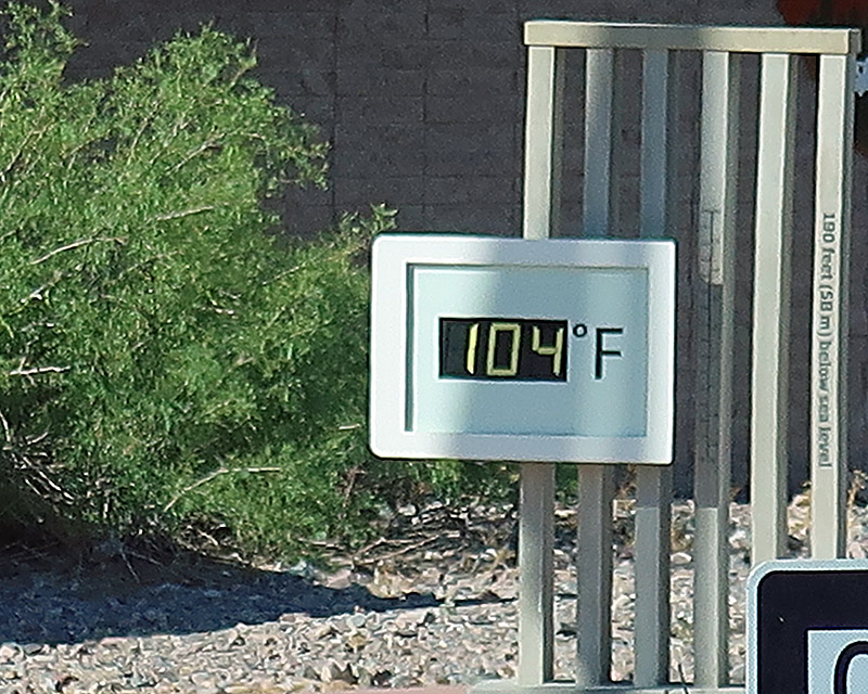 エントランス付近の午後の気温 (華氏104度は摂氏40度)