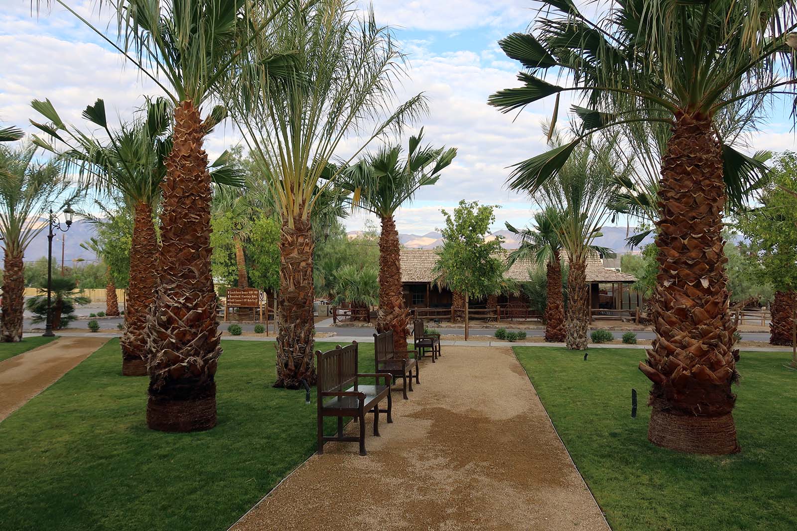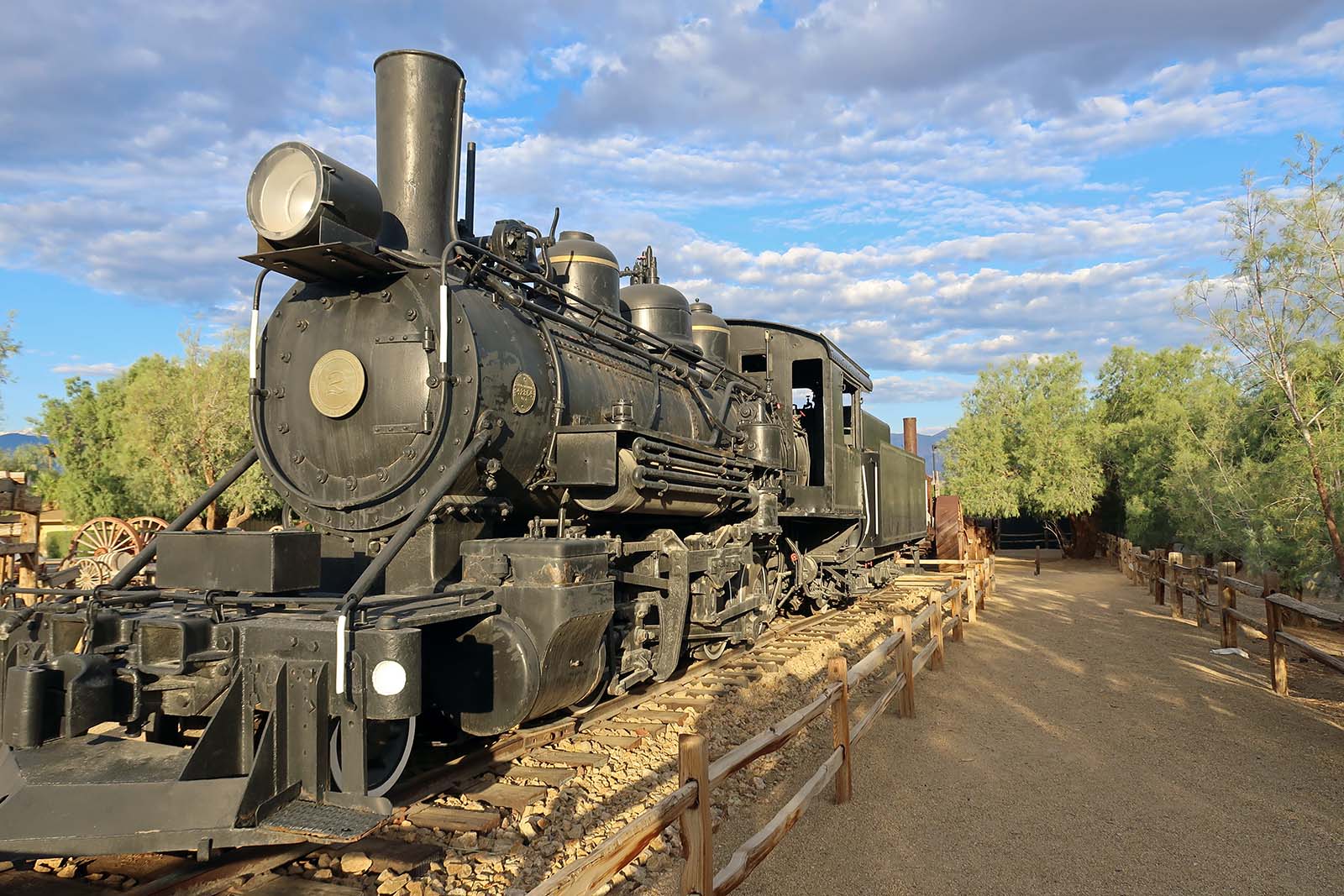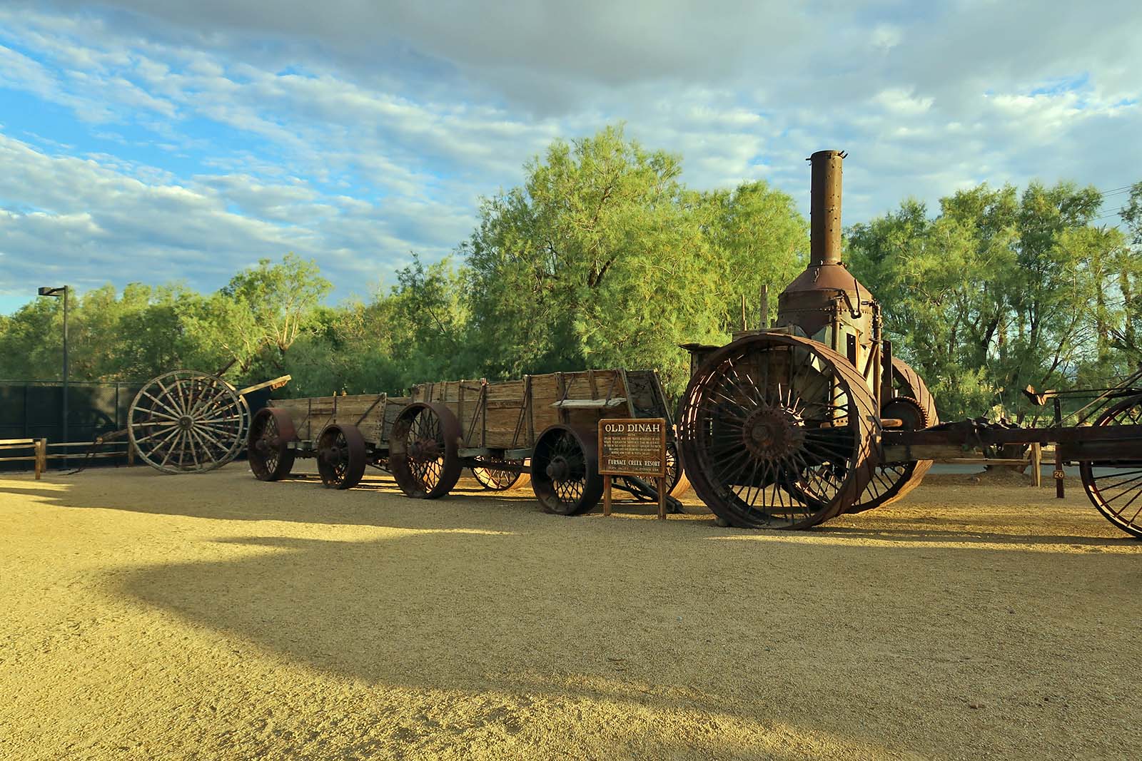 1927年にファーナスクリークインは建てられました。デスバレー鉄道はパシフィックコーストボラックスカンパニーが、ホウ砂事業のため建設したですが、事業が不振になった後、鉄道を救済策として、ホテルを建設しました。車が一般的になる前の時代、多くのハリウッドスターは列車に乗ってこの砂漠のリゾートにやって来ました。鉄道は廃止されましたが、ホテルは生き伸びてきました。ホテルにはホウ砂事業の設備や蒸気機関車が残されています。西側にはパナミント山脈の景色が見えます。