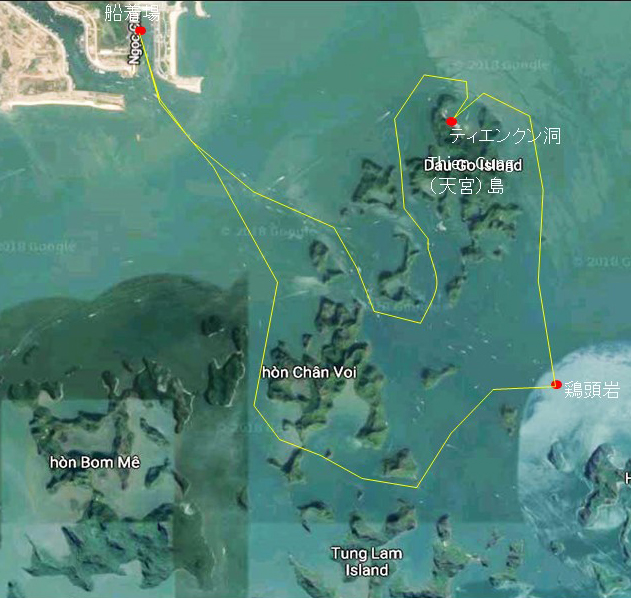 クルーズのコース 約3時間 鍾乳洞見学と船上での昼食を含む
