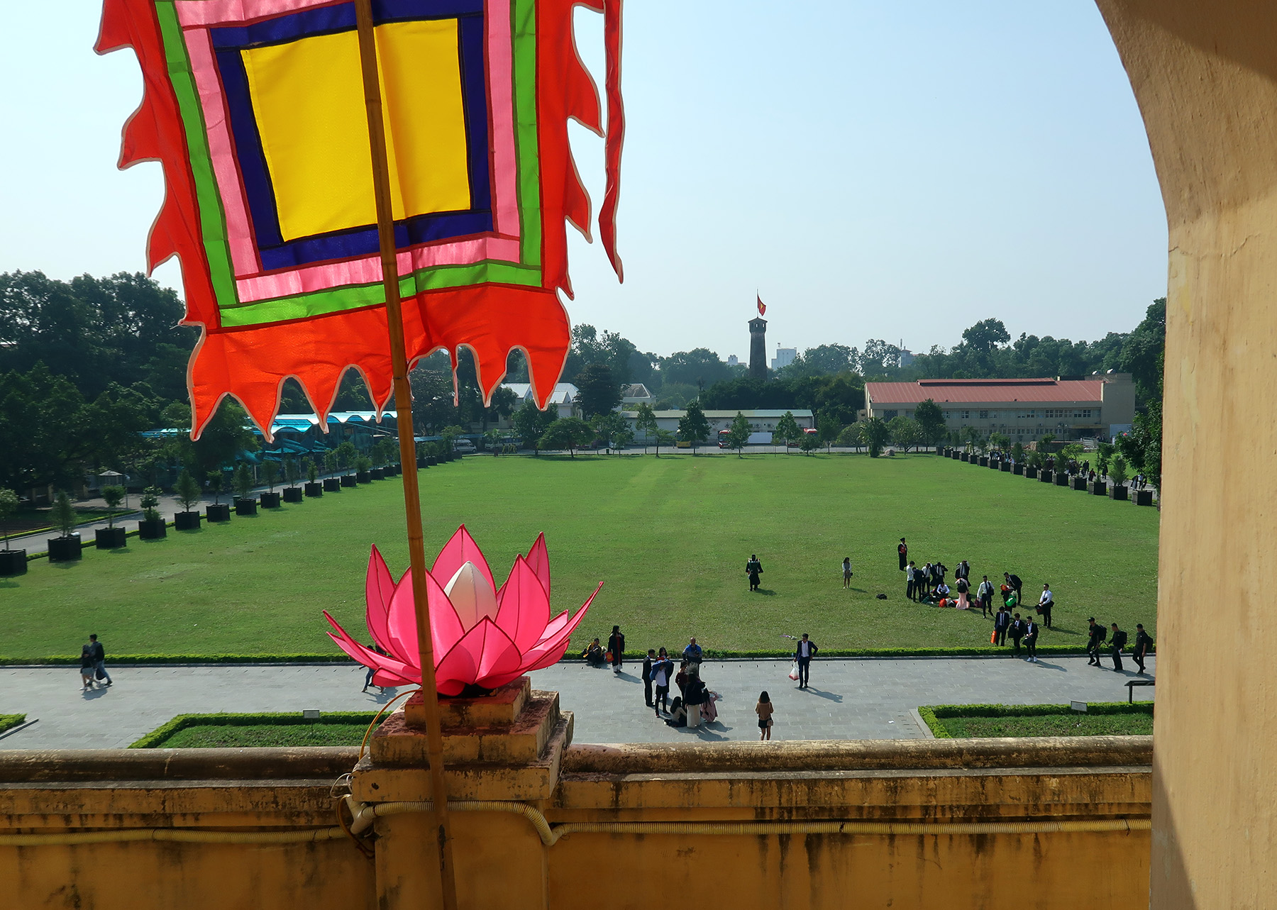 ハノイの広場にある建物は蓮をイメージした建築物。 石柱が屋根を支え、その下の入場門の両側には、常に白い服を来た衛兵が立っている。