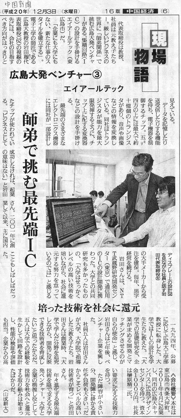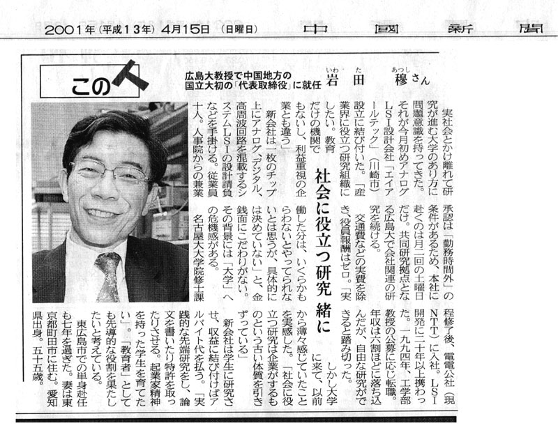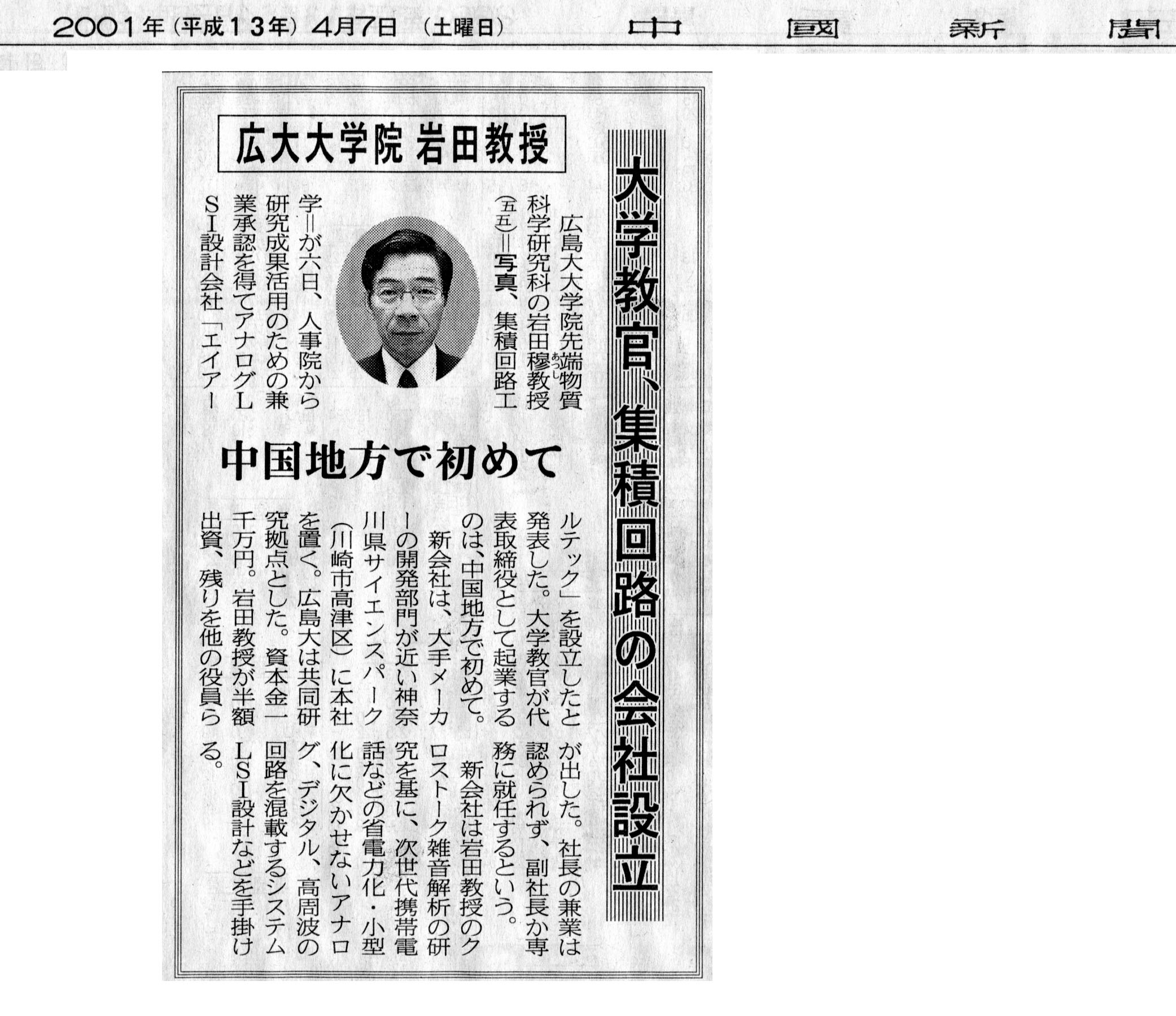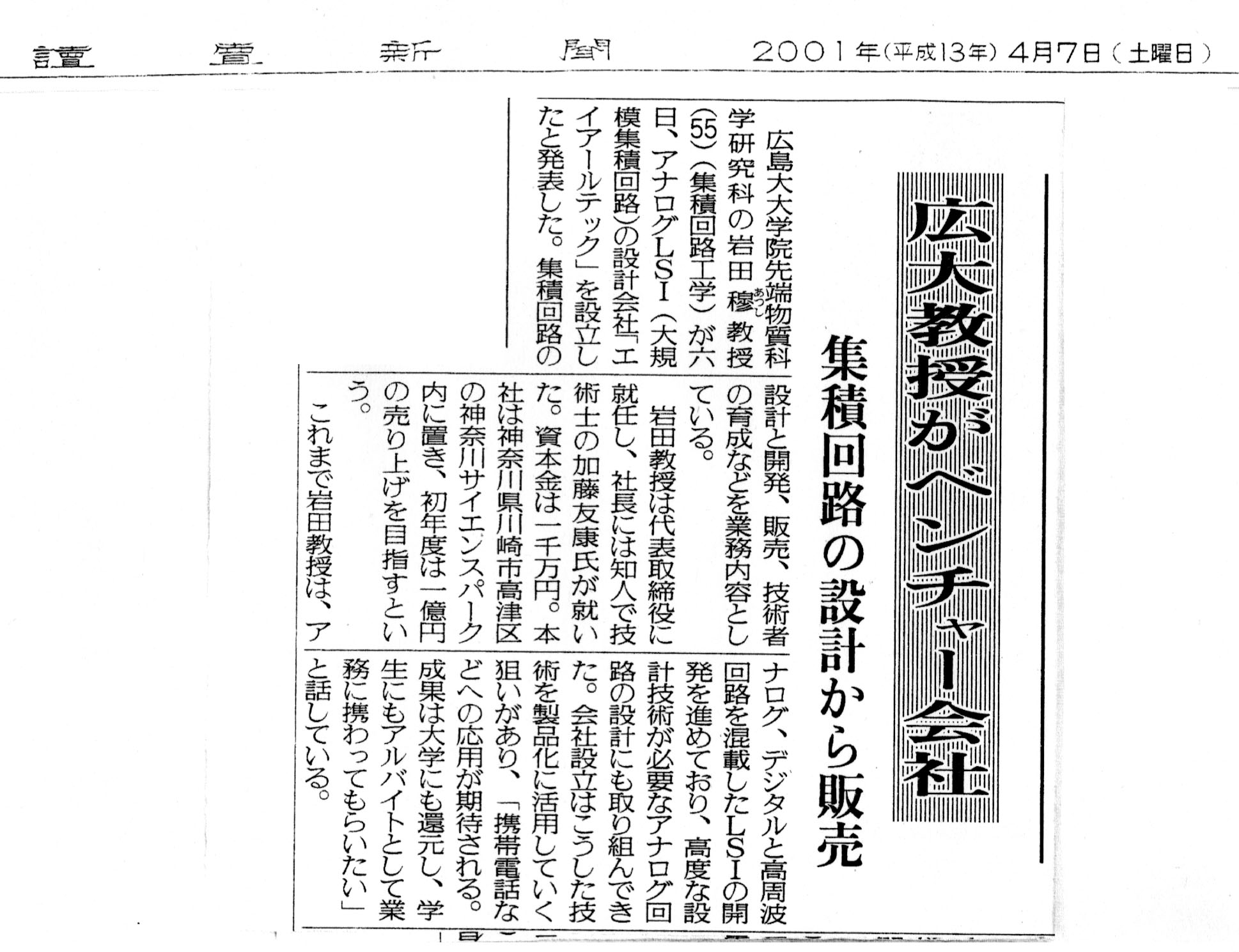 2001年に岩田穆はA-R-Tecを起業,週刊東洋経済や新聞各紙で報道。
