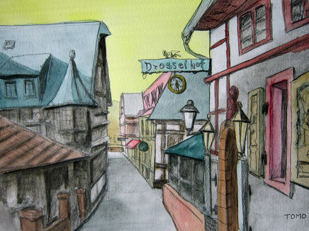 作品10 旅の思い出3 [制作2011年2月] ドイツ ライン川ほとりの小さな町 (早朝のため、まだ店はしまっていた) |