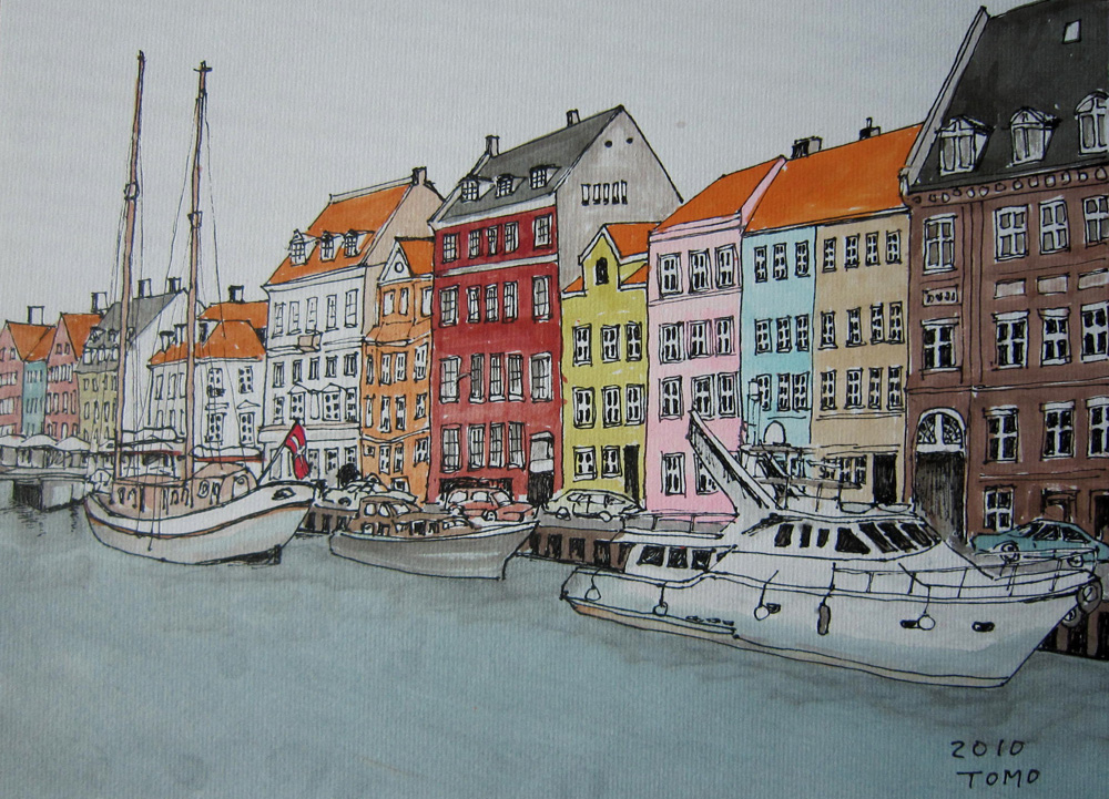 作品14 旅の思い出7 [制作2010年7月] デンマーク ニューハウン地区 (華やかな家並みにウキウキ) |