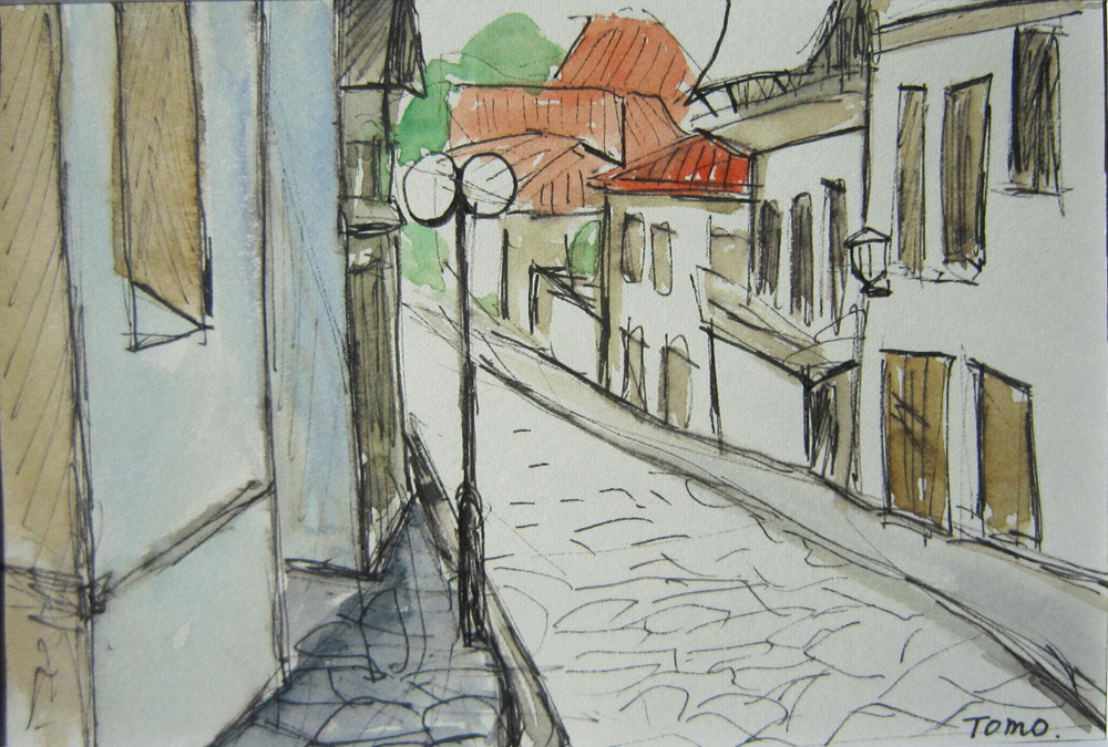 作品19 旅の思い出12 [制作2000年8月] ギリシャ 石畳の坂道 (デルフィからの帰り道、レストランで昼食) |