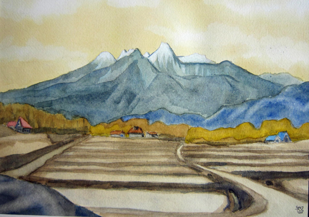作品1 八ヶ岳南麓からの風景1 [制作2011年3月] 我が家の2階から初冬の南アルプスを遠望 |