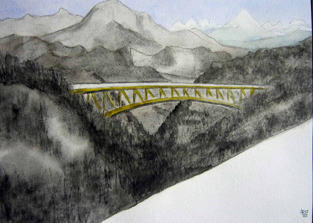 作品7 八ヶ岳南麓からの風景7 [制作2011年2月] 冬の高原大橋 (モノトーンの風景の向こうに富士山) |