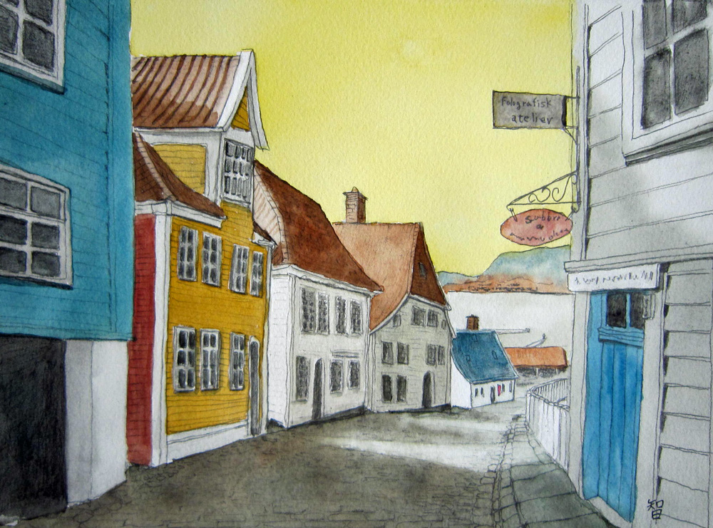 作品13 旅の思い出6 [制作2010年7月] ノルウェイ ベルゲン散歩 (なぜか心落ち着く北欧の風情) |